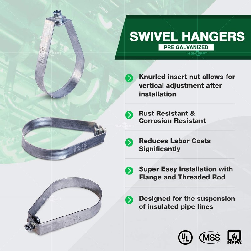 Highcraft ITSO-HQ34-10 Swivel Loop Pipe Hanger, Pre-Galvanized Steel, 3/4 in., 10 PK