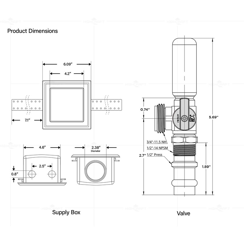 Highcraft Washing Machine Outlet Box Compact Universal Utitliy Outlet Valve Box for Ice Makers, Gas Valves, Air Admittance Valves and Washing Machine, 1/2" Press Connection with Hammer Arrestor