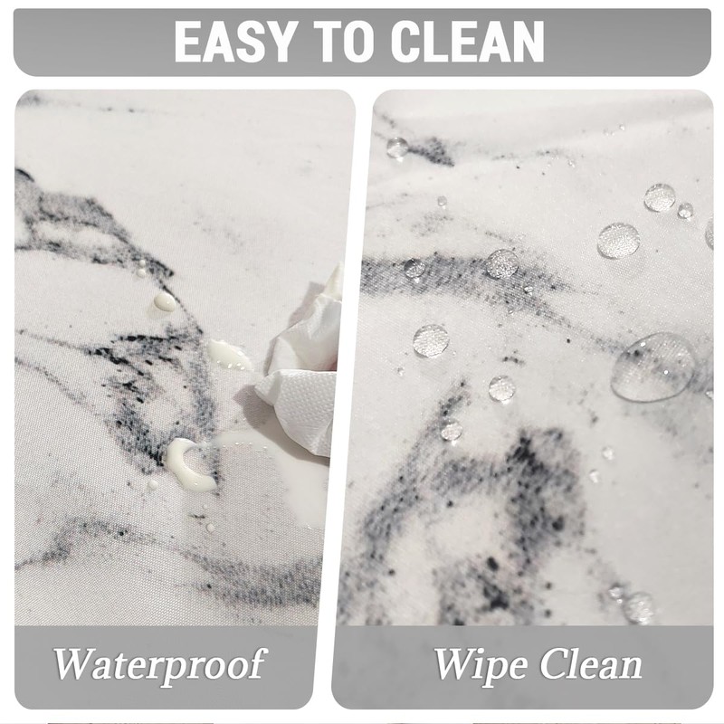 - Waterproof tablecloth: the fine fibres of the round tablecloth can effectively prevent the penetration of juice, oil, milk and coffee. Liquids should not remain on the tablecloth for a long time. Shake lightly to make the water drops bead off; wipe with a towel to remove dirt quickly