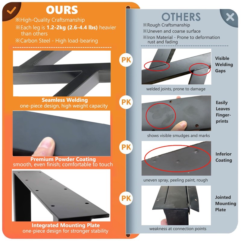- [Built to Last] Crafted from 1.2mm thick carbon steel with a premium baked lacquer finish, our table legs are rust-resistant, wear-proof, and capable of handling heavy loads with ease. Designed for both indoor and outdoor use.