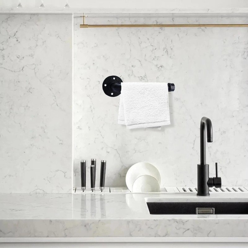 This industrial pipe hand towel rack is made of iron metal, with electroplated black finish, which for long term durability and rust proof.