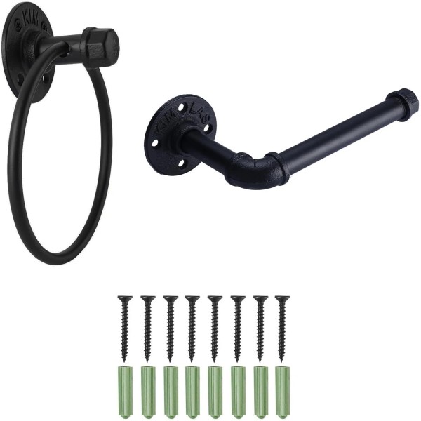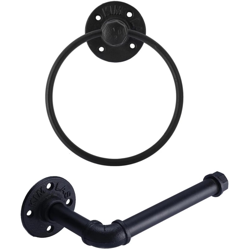 HighFree Industrial Pipe Bathroom Hardware Set Black Wall Mounted Hardware Accessories