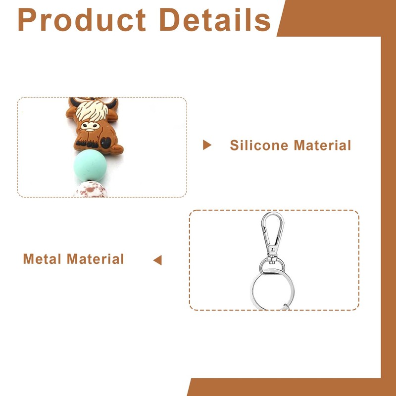 - [Craftsmanship and Design Features]: Highland Cow Keyring an adorable Highland Cow design in warm wheat colors, this keyring combines whimsical charm with practicality, making it a lovely addition to any accessory collection.