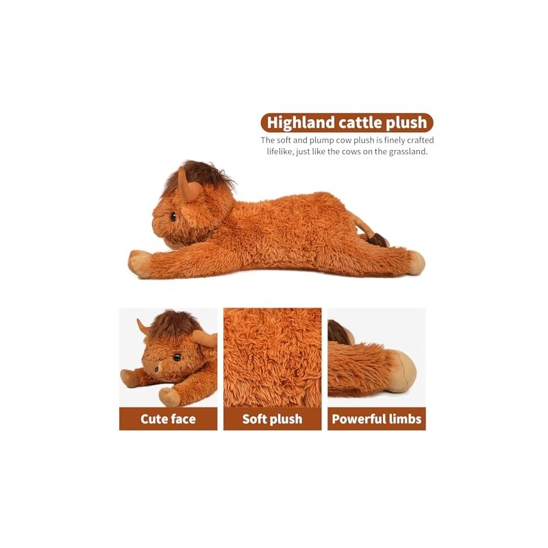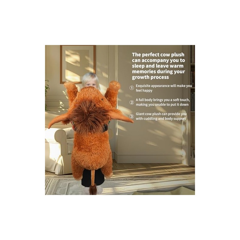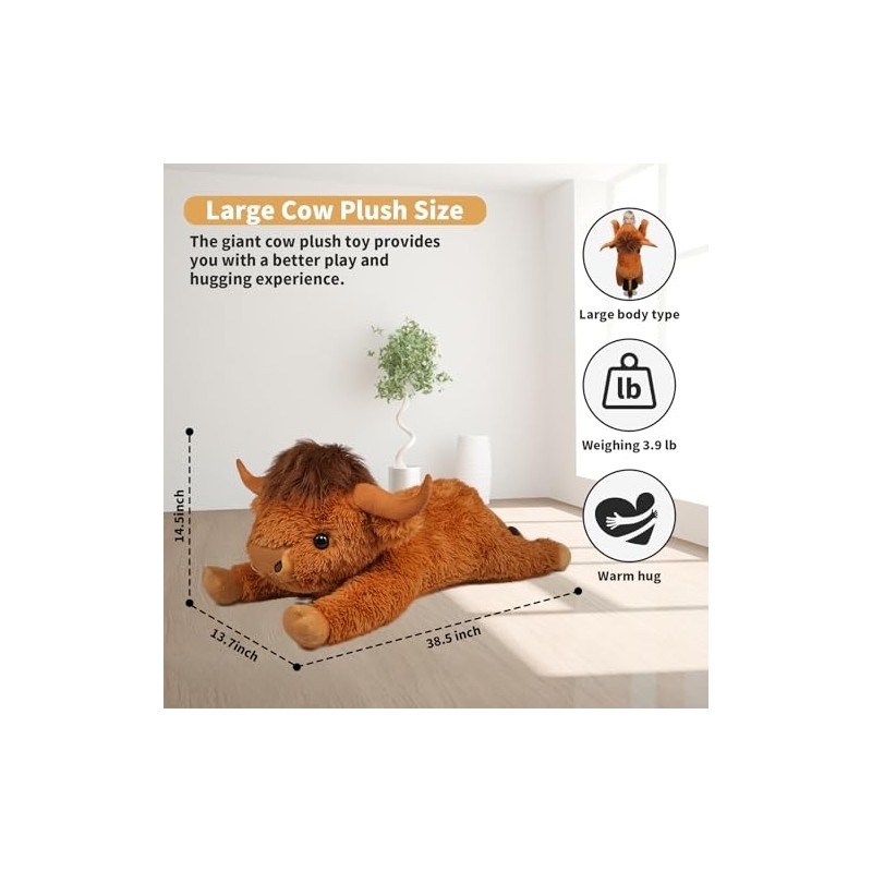 Highland Cow Stuffed Animal - 38.5" Dark Brown Giant Cows Plush Toy Gift for Kids & Adults, Cattle Decorations Pillows Living Room Bedroom