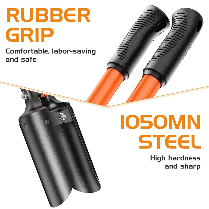 • 🪴【Easily Cuts Through Tough Soil】Tame hard-packed earth, rooted soil, and clay with ease! Our heavy-duty steel blades stay sharp and impact-resistant, letting you dig post holes faster and with less effort than standard shovels. No more bouncing off rocks or struggling with stubborn ground.