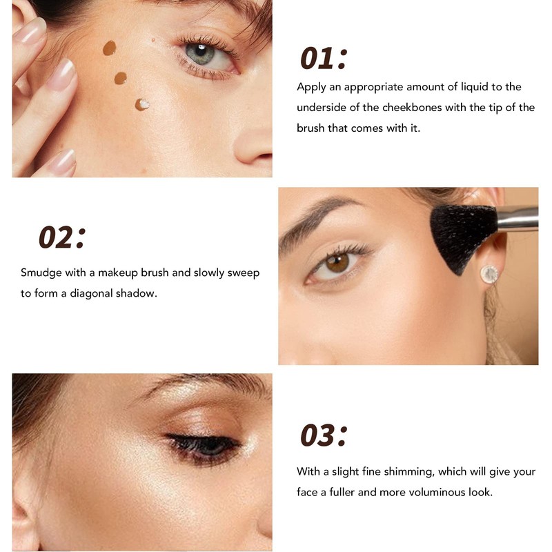 - Face contouring: bronzer liquid effectively conceals pores, evens out and brightens skin tone, improves dullness and gives you a more defined facial contour.
