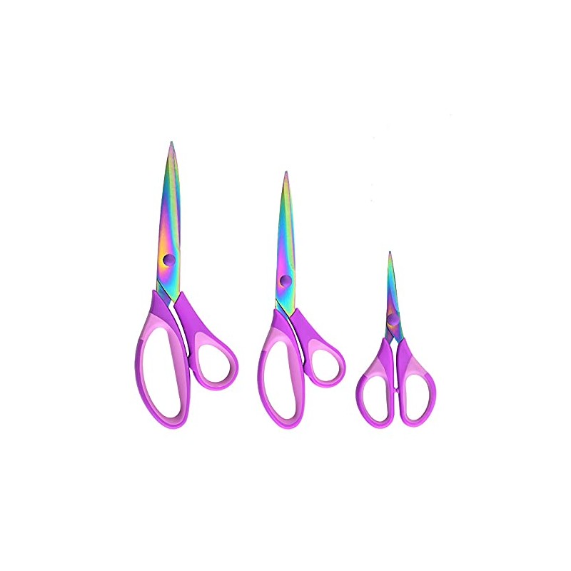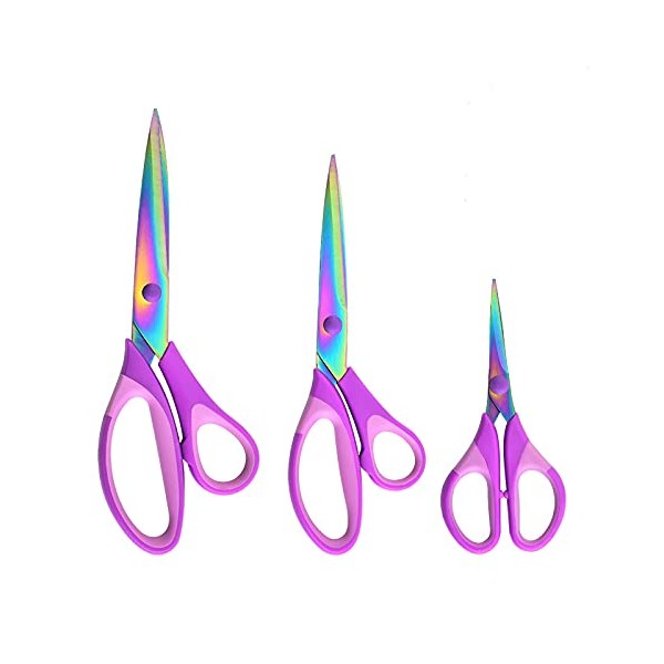 HIGHROCK Premium Tailor Scissors Titanium Soft Grip Sewing Scissors Set for Fabric Leather Dressmaking Crafting household sewing scissors set(1 Set of 3) (Purple)
