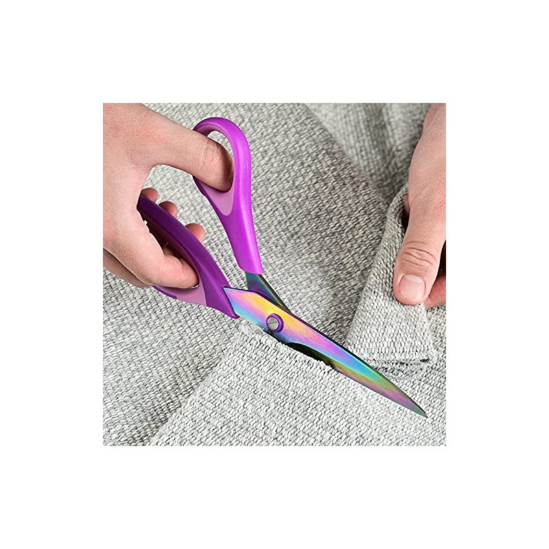 - The blades of Fabric scissors are made of knife-grade stainless steel and surface with color titanium plating, showing better anti-corrosion feature and longer service life. Multi-color titanium coating blade. They are strongly resistant to rusting and to adhensives such as glue and tape