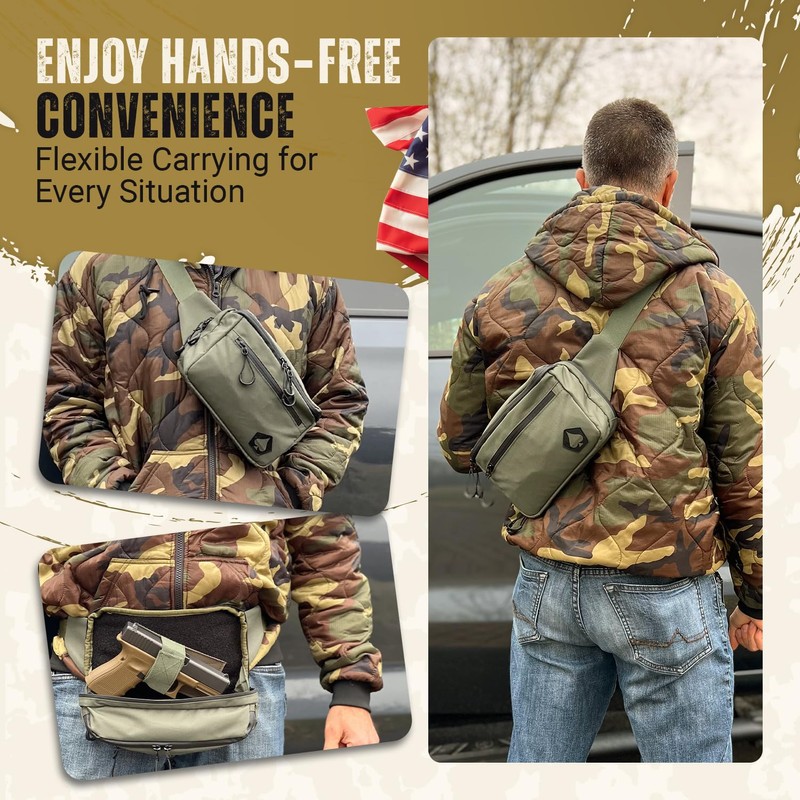 - ACCESS YOUR ITEMS IN A SNAP: Gain instant access to essentials with the ccw crossbody bag’s dedicated clamshell pocket, designed for EDC and CCW. A 6"x2" semi-rigid holster and 1.5" retention strap secure items for safe, organized carry on the go