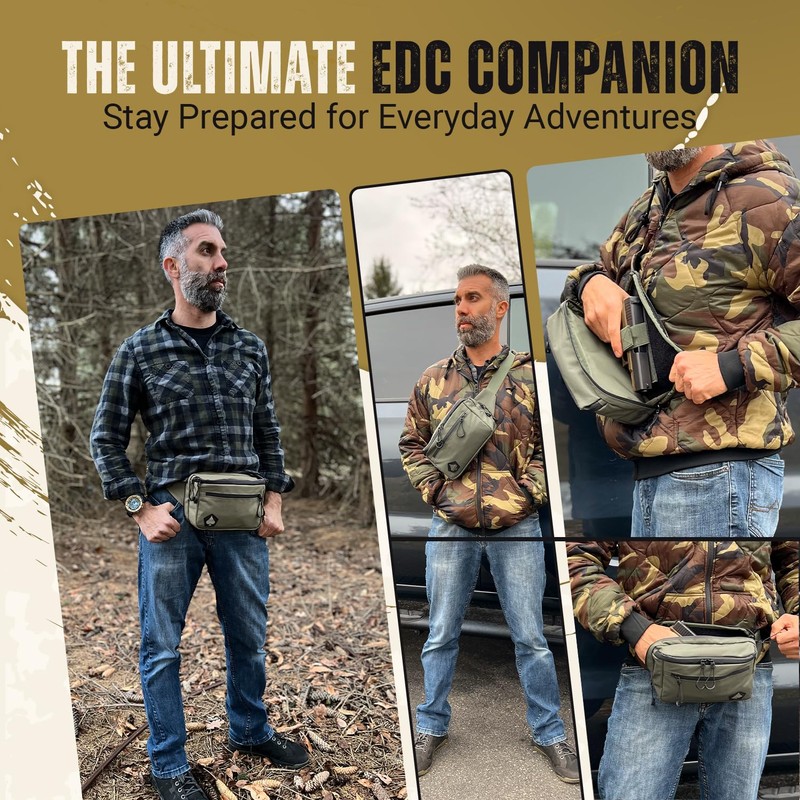 - CARRY MORE WITH LESS BULK: Measuring 9.75" x 5.5" x 3", this lightweight fanny pack offers a streamlined profile that’s easy to carry. Compact enough for daily use but spacious enough for essentials, it’s the ideal solution for EDC enthusiasts on the move