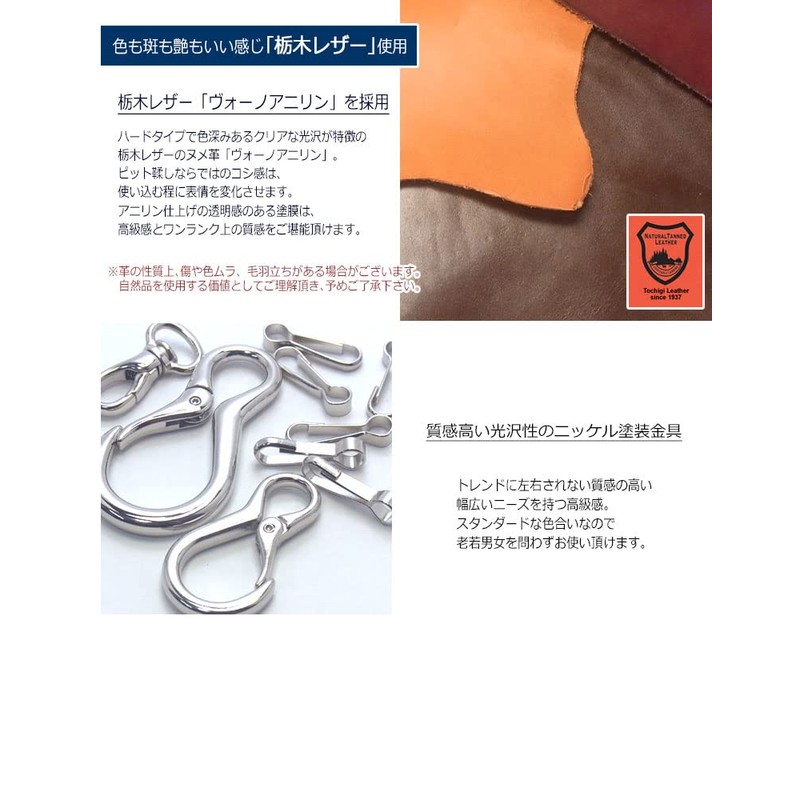 - Material: Leather part: Cowhide (Tochigi leather); Metal fittings: Iron, stainless steel; Made in Japan
