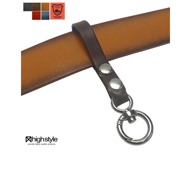 Highstyle 2 Button Tochigi Leather Slim Design Silver Color Round Mini Carabiner Belt Loop Key Chain, silver color/camel