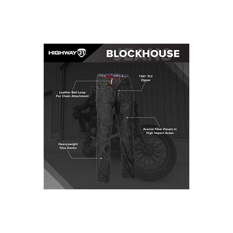 - A WHOLE NEW WORLD OF ADVENTURES: When riding, the journey itself is the destination. Our Blockhouse motorcycle jeans are made of a heavyweight stretch denim fabric with a straight-cut fit, perfect for any riding performance on two wheels.