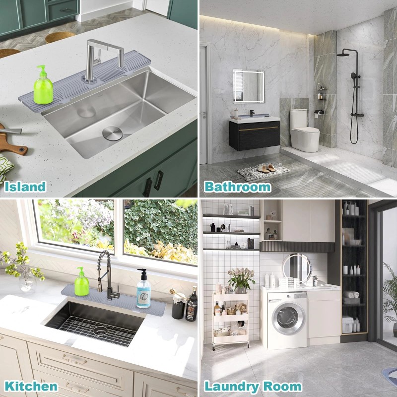 【Wide Application】You could install this silicone sink mat almost anywhere you have a faucet, kitchen, bathroom sink, laundry tub, RV, farmhouse and etc. It is perfect for keeping your countertops and caulking dry, and clean.It's a great housewarming gift for friends or family.