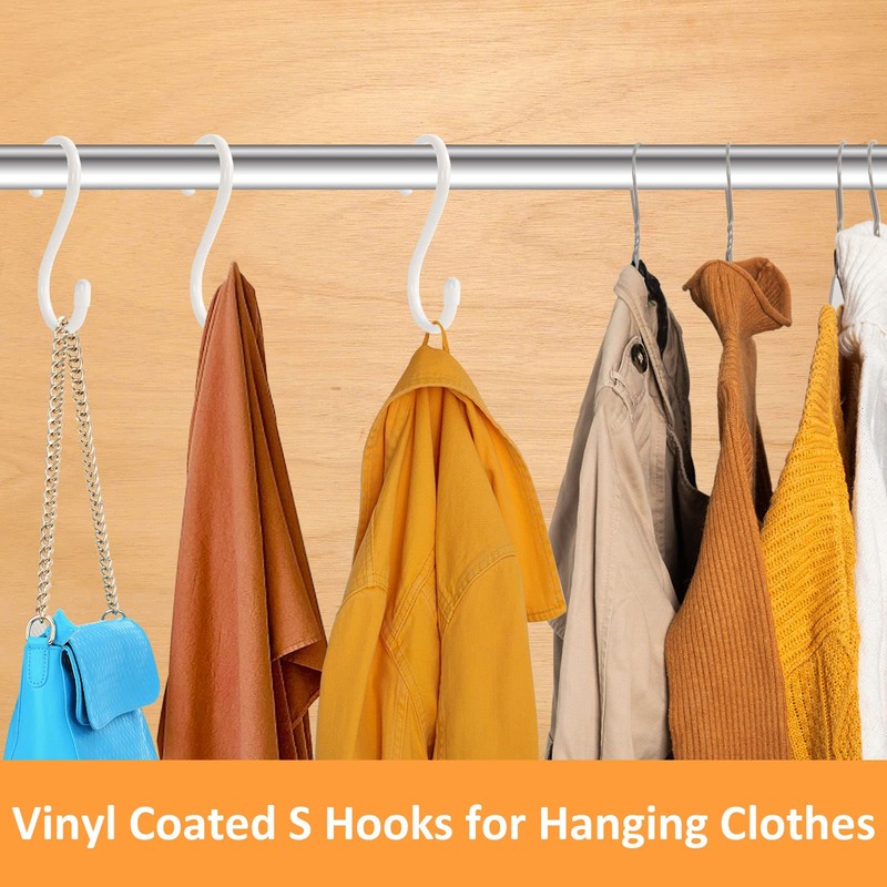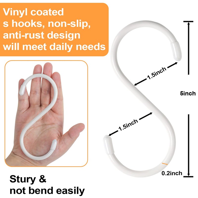 - Quality Materials: Heavy duty white s hooks are made of thick metal wire, which is sturdy to hang heavier items, not easy to break. Utility white s hooks with non slip vinyl surface will meet your different needs.