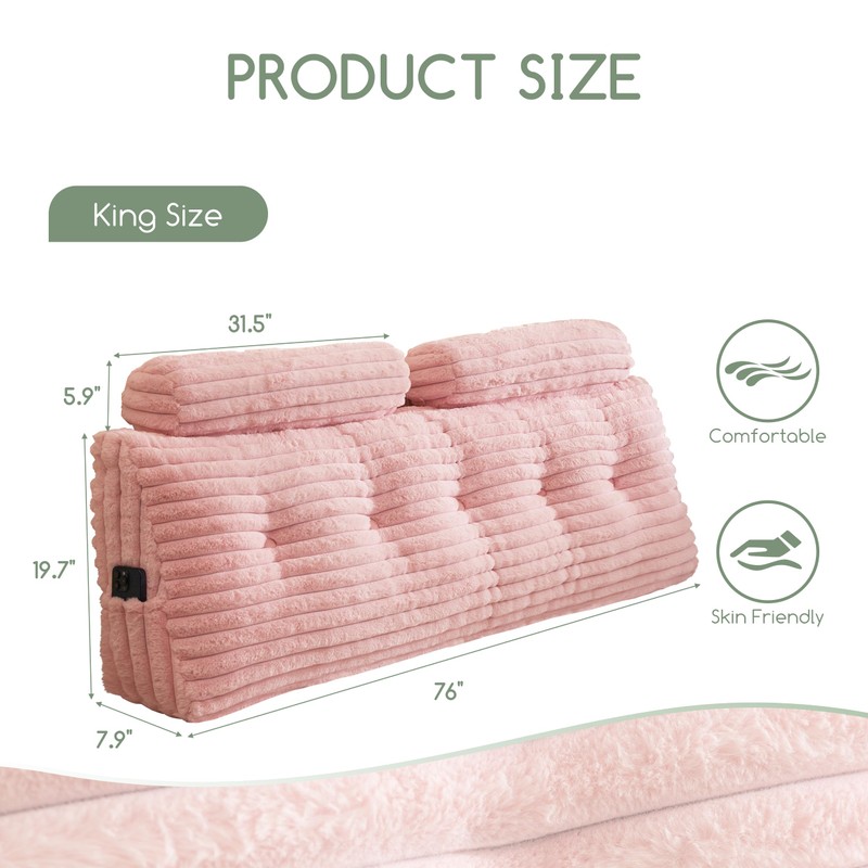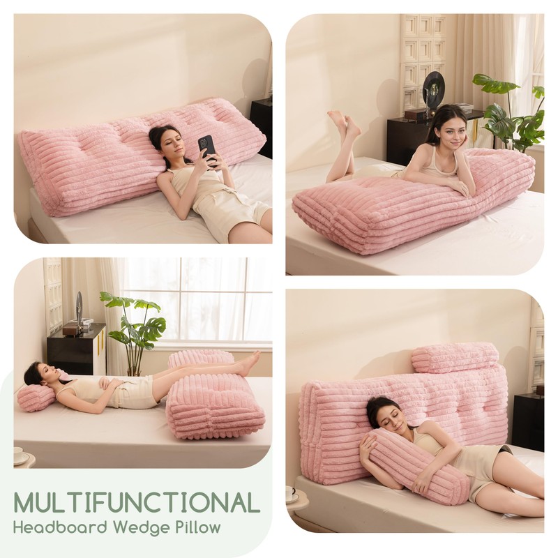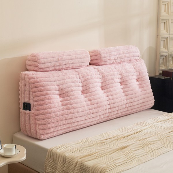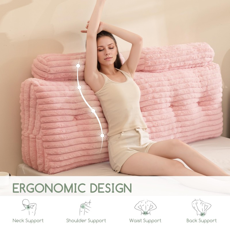 - Thoughtful Details: The wedge headboard pillow cover is made of ultra-soft faux fur, and the cover can be easily removed for cleaning by simply unzipping and unbuttoning. We also include an extra cylindrical pillow as a bonus, the twin size includes one pillow, while the full and queen sizes include two pillows. Plus, there are side pockets for your handy items.