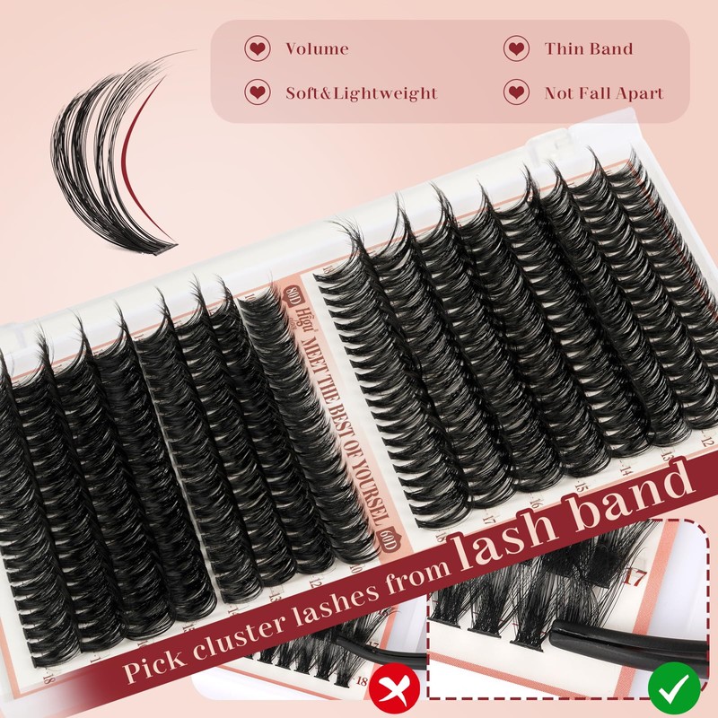 - Various Lengths Individual Lashes: Higu clace eyelashes cluster are mixed from 10-18mm,suitable for all styles of makeup, whether you are natural and clean style or exaggerated and bold style, mixed length lashes clusters are available for you to choose, whether it is daily travel, work, travel, or party, it can meet your needs.