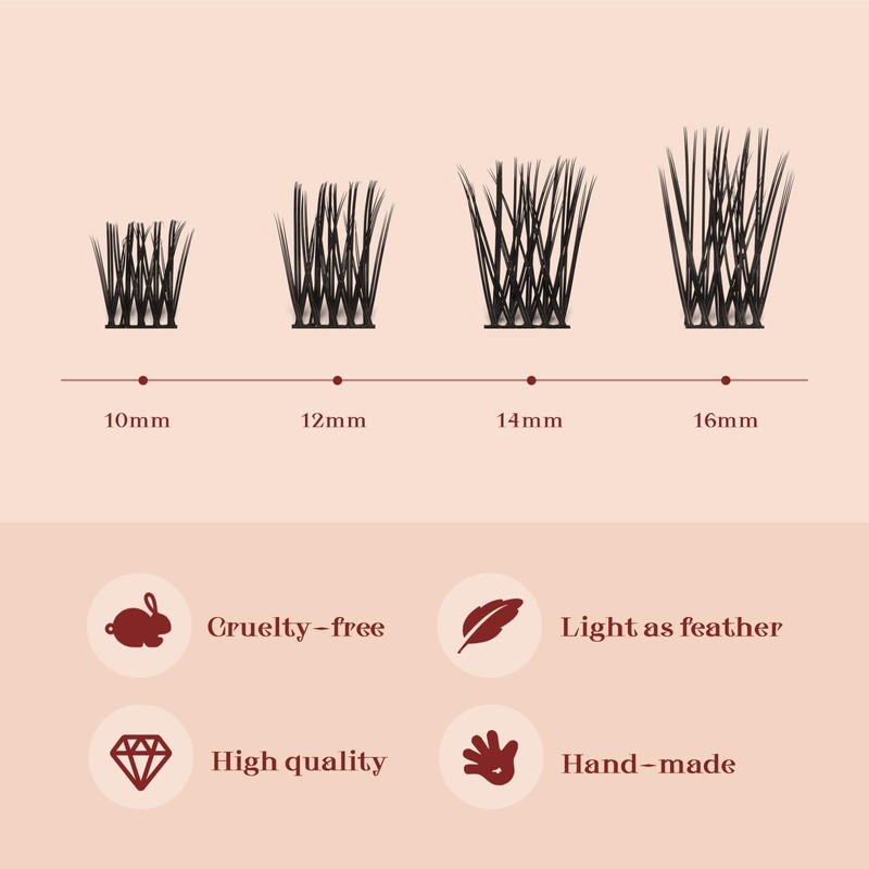 MORE OPTIONS Choose the length of the cluster eyelashes according to your preferred style.
