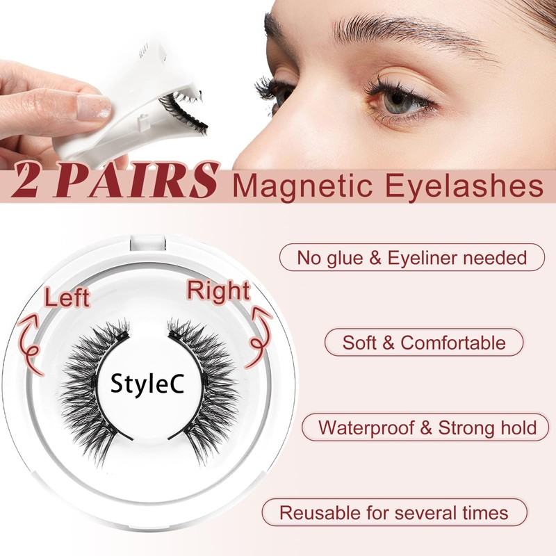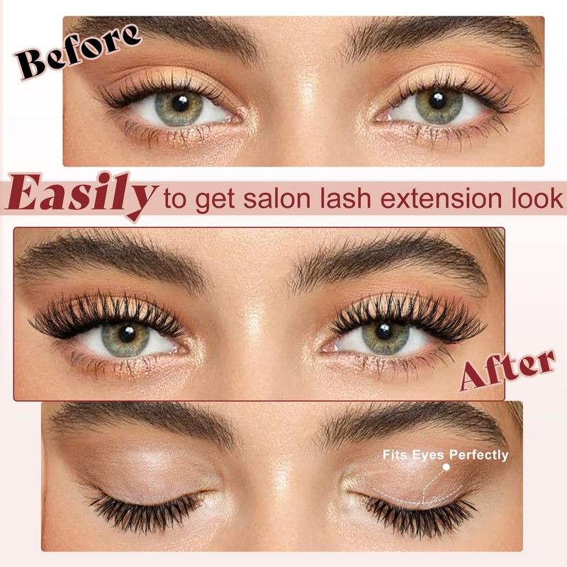 Fluffy and Natural Eyelash Appearance: Magnetic eyelashes extend completely from the bottom to the tip of your eyelashes, making your eyelashes look beautiful. Magnetic lashes kit no glue needed and thus no irritation to your skin. And our magnetic lashes feel weightless when worn, once you put them on, you may even forget they're there! The newly upgraded design have 3 small magnets at the base of the eyelashes for a stronger hold, perfect for quick touch-ups or all-day wear without any discomfort. And it can be easily matched with any cosmetics without eyeliner, specially designed for lazy people!