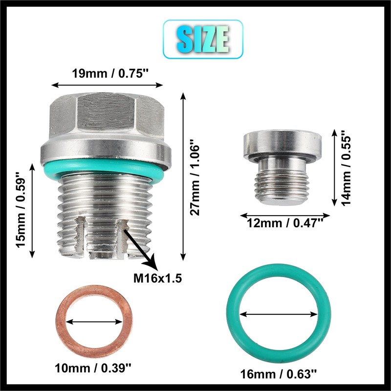 - Compatible: Universal M16.1-1.5 x 15mm Oversize Piggyback Oil Drain Plug.