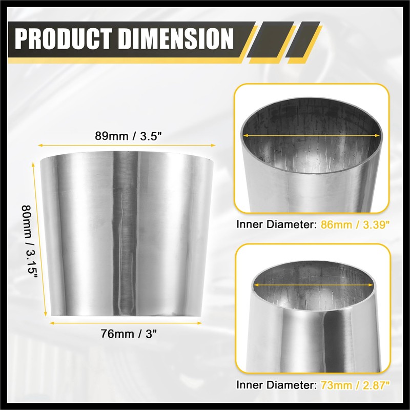 - Compatible: Pipe Specification: Input Outside Diameter: 76mm / 3"; Output Outside Diameter: 89mm / 3.5"; Height: 80mm / 3.15"; Wall Thickness: 1.5mm / 0.06".