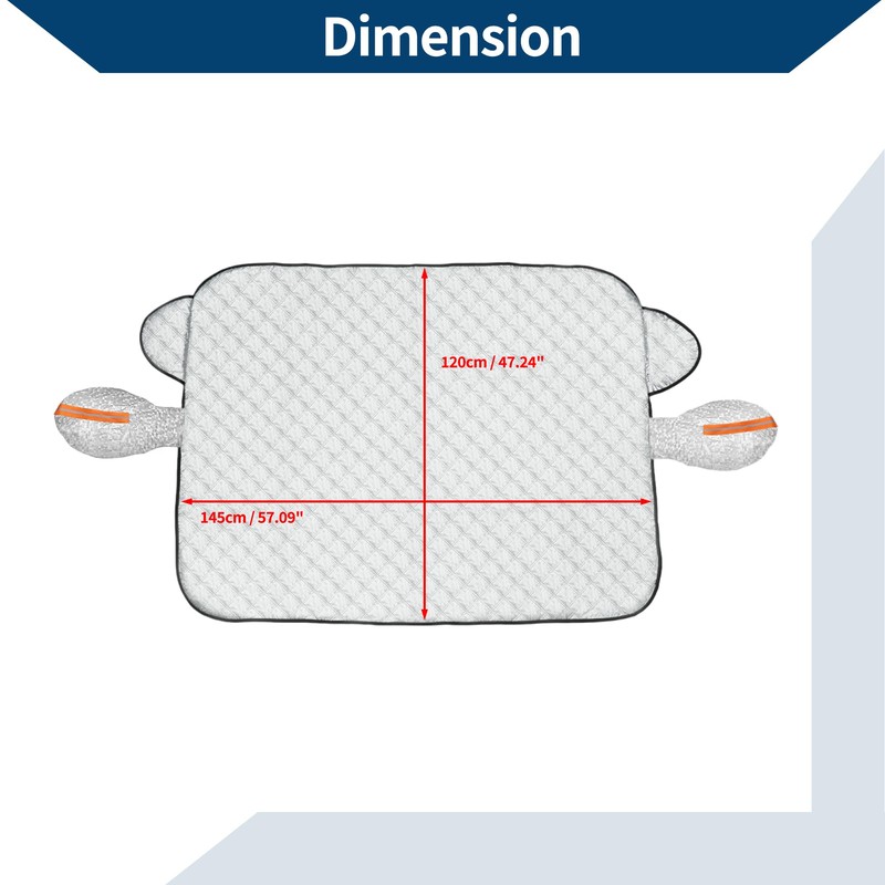 - PRODUCT INFORMATION: Size: 145x120cm / 57.09"x47.24"(L*W); The windshield shield comprises four strata of blended substances (PE aluminum film, staple cotton, silk floss, non-woven novelty fabric), boasting an extra-thick composition with dual-sided aluminum plating. It exhibits traits of tear-proofing, heat resistance, substantial sturdiness, and prolonged endurance.