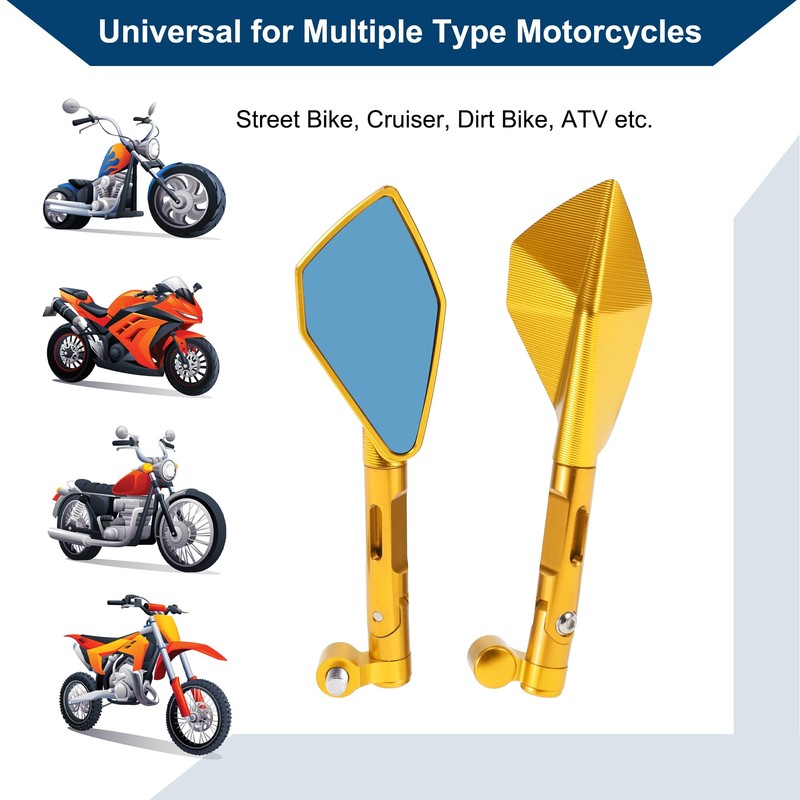 Hihaha Motorcycle Rear View Mirrors Bar End Side Mirrors Mount Adjustable Aluminum Alloy 1 Set Gold Tone M8/M10 Prismatic Shape