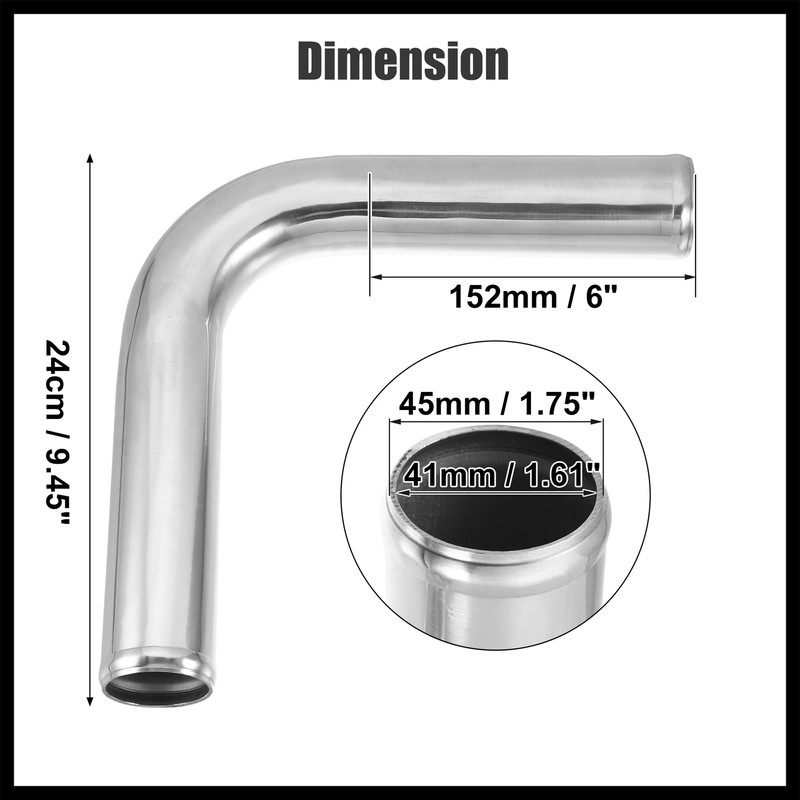 Hihaha OD 1.75" 45mm Leg Length 6" 152mm Car Aluminum Alloy Tube Intercooler Pipe 90 Degree Bend Elbow Air Intake Joiners Tubing - Pack of 2 Durable Material