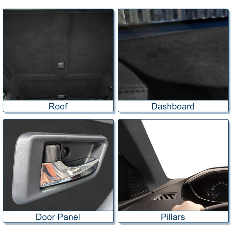 - Vehicle Compatibility:Widely applied for cars, trucks, pickups, RVs, SUVs, marine, boats for automotive headliner, sunroof panel, seats, door panels, etc. It does a good job in interior trim upholstery, roof ceiling, steering wheel, A B C pillar, dashboard, center console, carpet lining, aging broken faded DIY repair replacement.