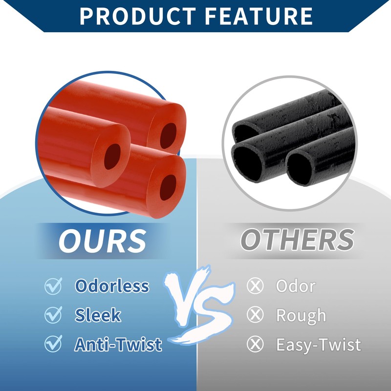 • Hergestellt aus: Der Silikon-Vakuumschlauch, hergestellt aus hochtemperaturbeständigem verstärktem Silikon, ist ein fester Silikonschlauch, der keinen reizenden Geruch- hat und hohe Hitzebeständigkeit ohne Zusammenbruch aufweist. Der Silikonschlauch ist nicht leicht zu verdrehen und zu verformen.
