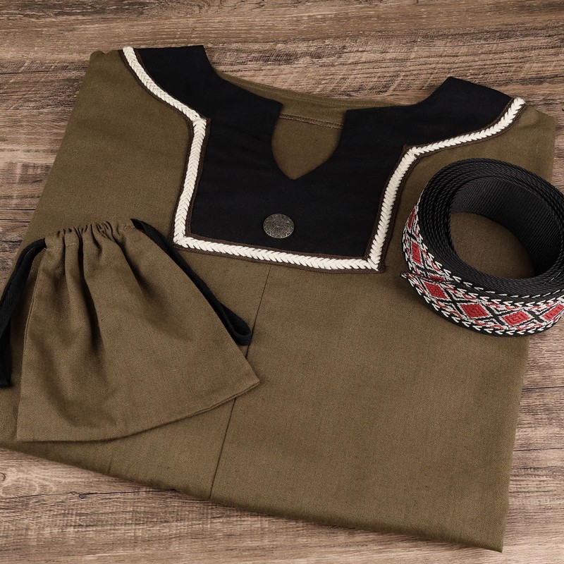 - COMPLETE SET- Including a top, belt, and pouch—no need to worry about matching. The top has a loose, comfortable fit for various body types; the woven belt combines decoration and utility (adjustable + pouch - hanging); the drawstring bag holds small props (coins, runestones). One set completes your character look.