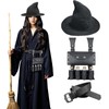 HiiFeuer Medieval Alchemy Set, Witch Pointed Hat for Women, Fantasy Wizard Belt with Potion Vials Waist Pouch (Black A)