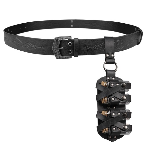 • COOL DESIGN- Featuring fantasy embossing for a distinctive and magical look, this belt comes equipped with four glass potion bottles, ideal for storing small amounts of liquids or small accessories. Each bottle is securely fastened yet easily accessible. The belt is sure to stand out on any adventure.