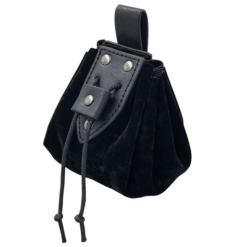 HiiFeuer Medieval Faux Leather Drawstring Bag Medieval Portable Coin Purse Studs Waist Bag Cube Bag for LARP Ren Faire, black A