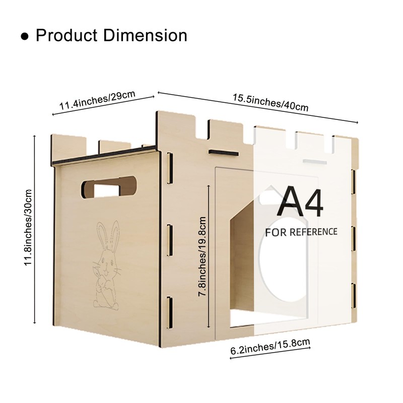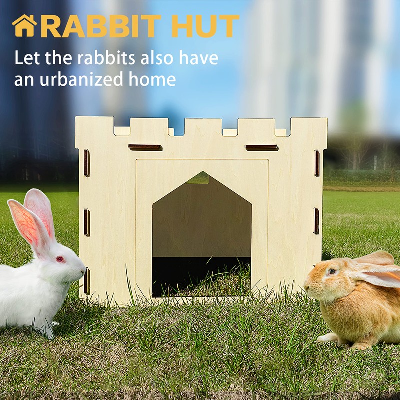 - 【Easy Use and Portablilty】This rabbit hiding house only requires 5 panels to put together. The wood castle can be disassembled and stored flat to save storage space. The convenient side panel handles make it easy to transport the bunny house, providing a portable solution that's perfect for travel or storage.