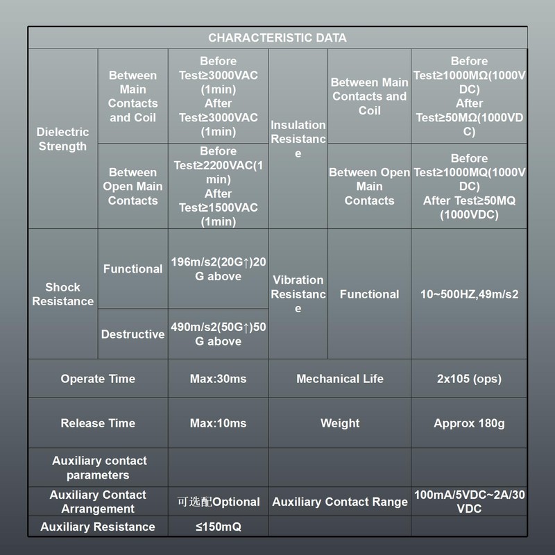 2.Epoxy resin package, the contact part is sealed in a sealed chamber filled with inert gas, contact no oxidation, arc no leakage, so as to ensure that the product has good safety;