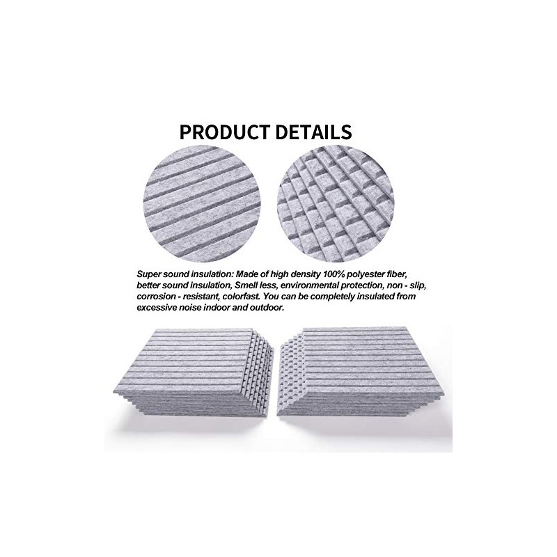 • HIGH DENSITY ACOUSTIC PANELSHIJIRH Latest Pro Grade acoustic panel is unique in the market. 10 times better than foam! Made of high density polyester fiber. We pursue perfection and only choose materials with the highest density! PRO GRADE & HIGH QUALITY,non - slip,colorfast. You can be completely insulated from excessive noise indoor and outdoor. 16 Pcs Pro Grade sound proof panels,you can also use as a bulletin board,multi-purpose,more cost-effective.