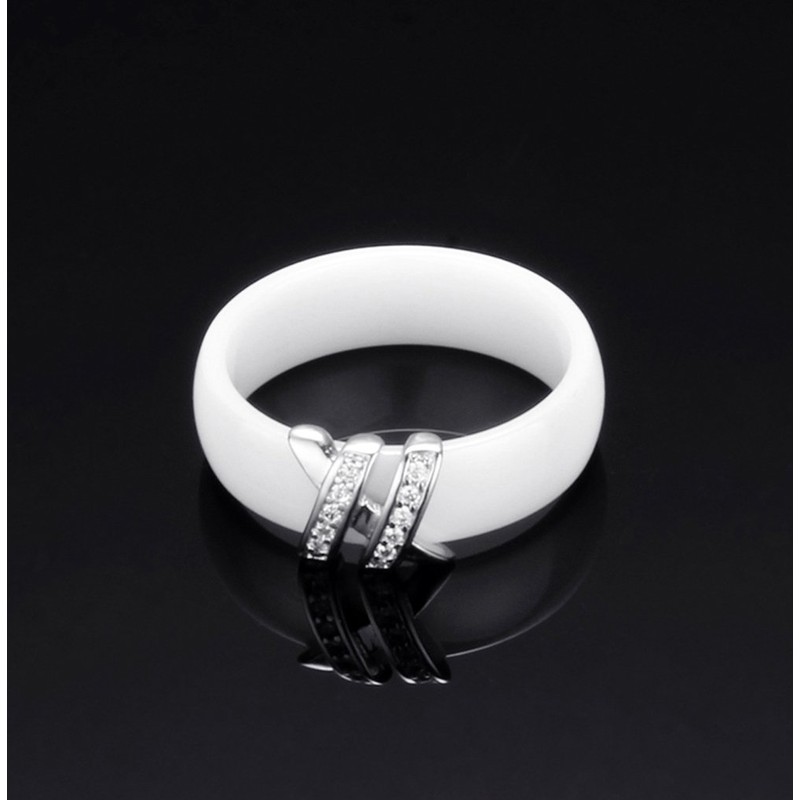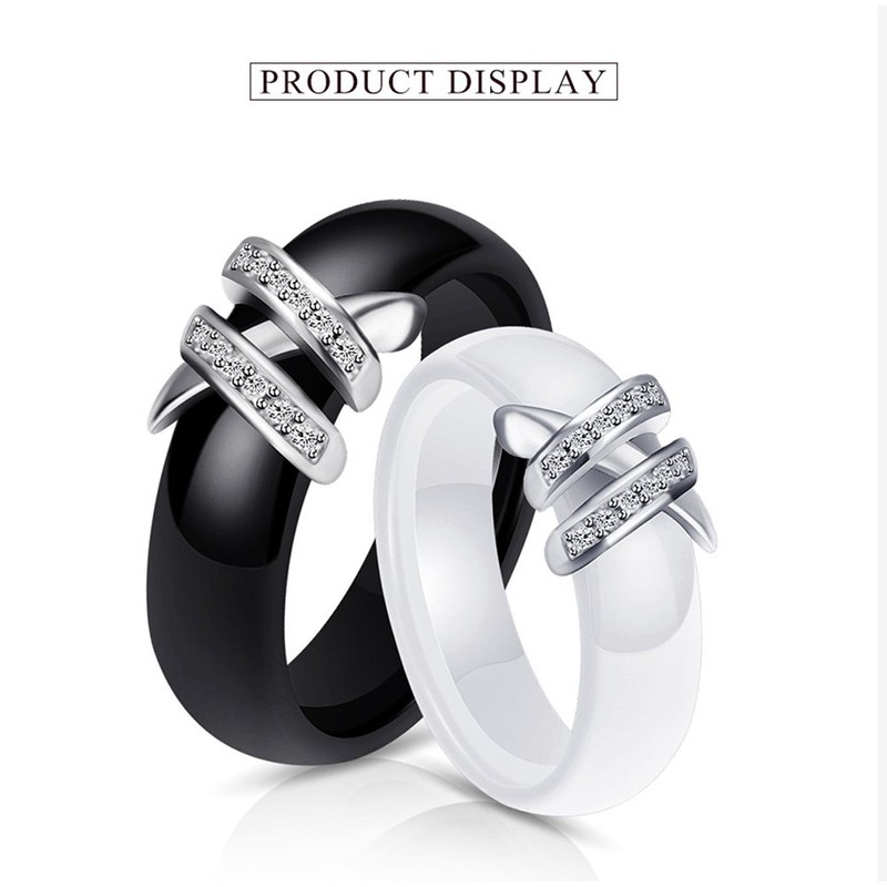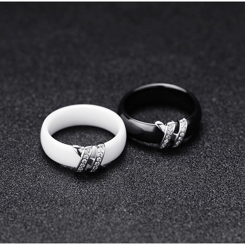 HIJONES Women's 6MM White & Black Ceramic Cubic Zirconia Ring Plain Engagement Wedding Band Double White Size M