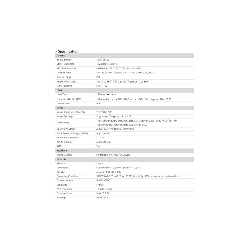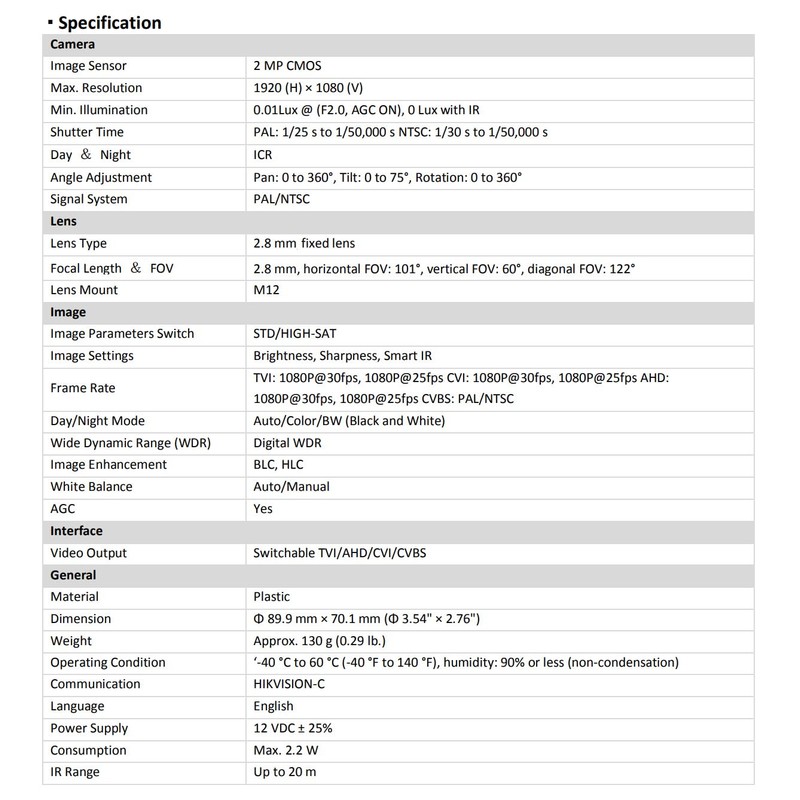 - High quality imaging with 2MP, 1920x1080 resolution Clear Color during daytime & B/W at nightime. Wide angle 2.8mm fixed lens.