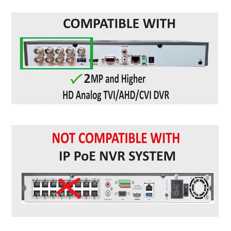 - IMPORTANT: This is a HD Analog Camera with BNC video connector that works with HD Analog DVR system. This is not an IP PoE Network camera and doesn't work with NVR system.