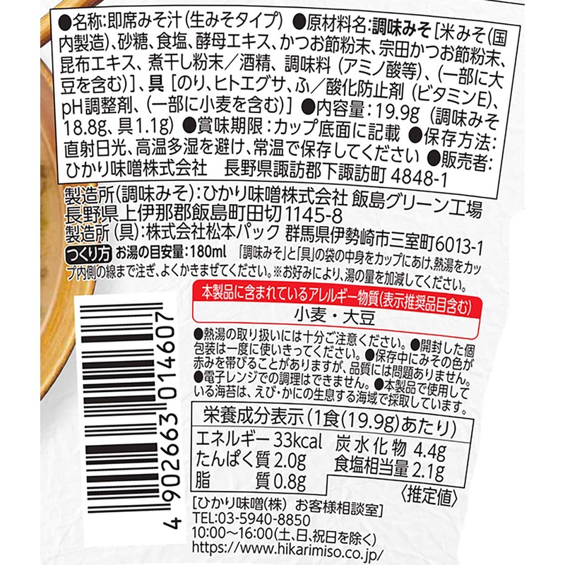 Hikari Miso Cup Miso Soup, Mellow Flavor and Scent, Nori, 1 Meal x 6 Packs