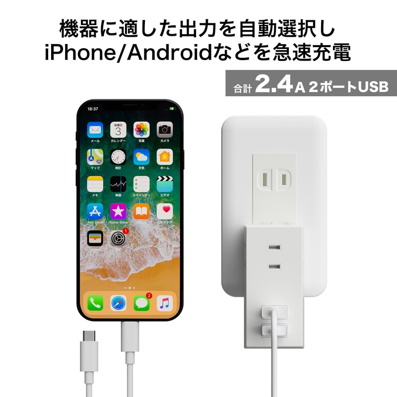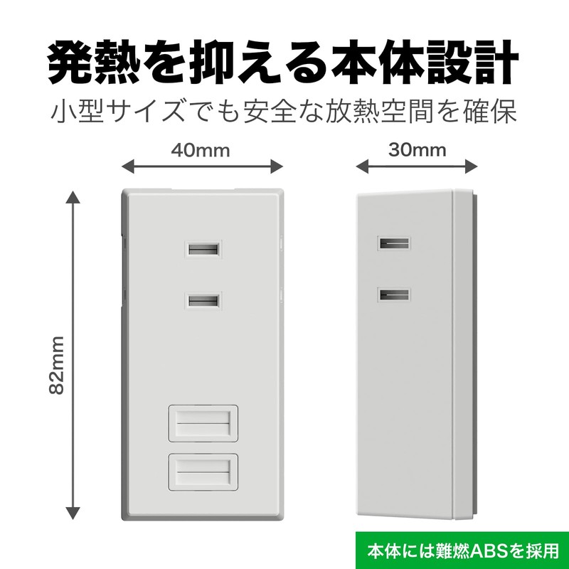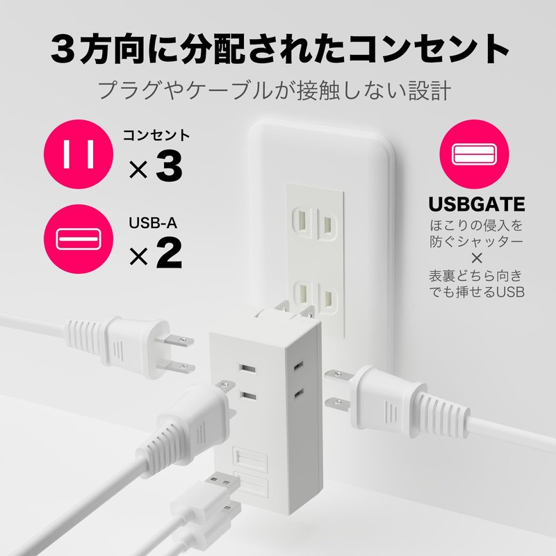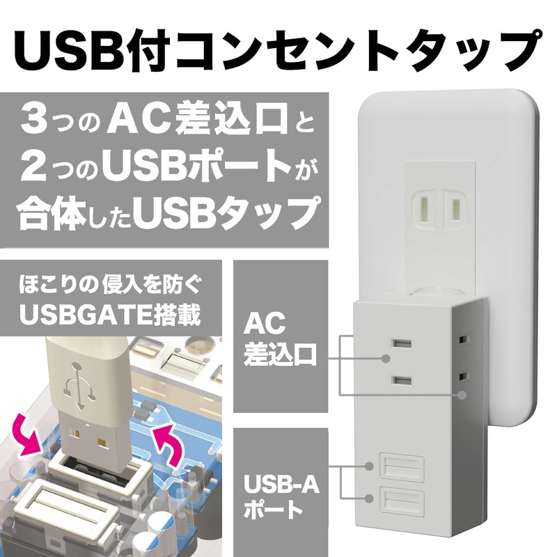 Hikari Terrace Outlet Tap with USB Shutter 3 AC Outlets 2 USB Ports, Shutter Included, USBGATE Outlet Tap, OA Tap, White