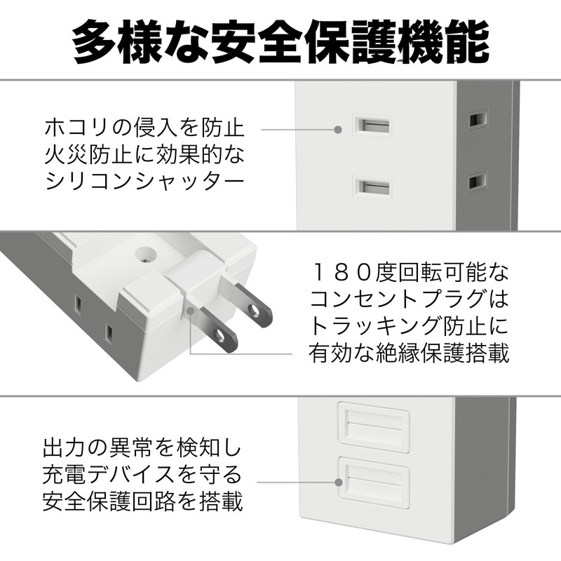 - The retractable outlet plug is equipped with an insulating resin to prevent fire