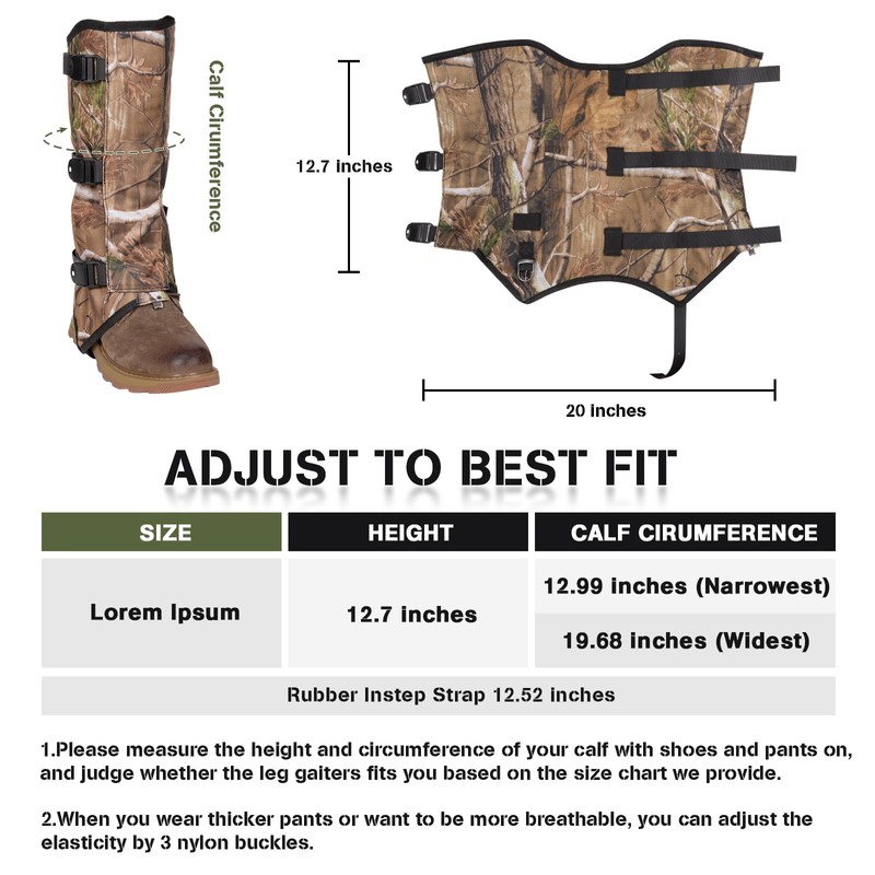 - 3-YEAR AFTER-SALE GUARANTEE: Thank you for choosing our leg gaiters. We offer a 3 years service from the date of purchase. If you encounter any issues, contact our customer support for assistance.