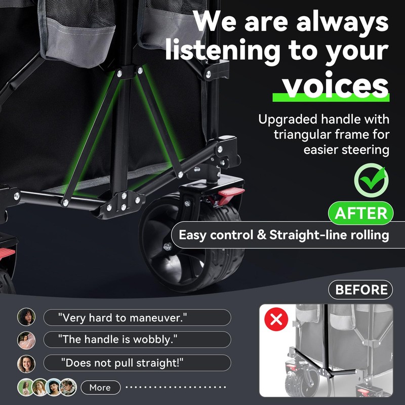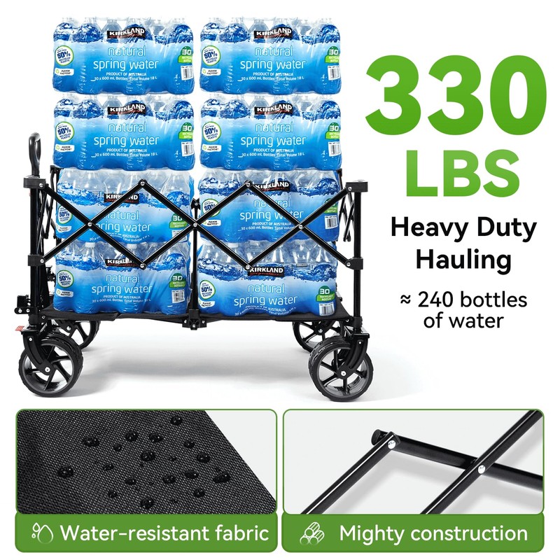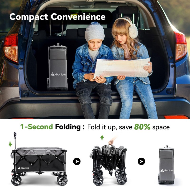 Hikenture Collapsible Wagon Cart, 330lbs Capacity Beach Wagons with Big Wheels for Sand, Heavy Duty Foldable Cart with Brakes, Portable Utility Folding Garden Cart for Outdoor