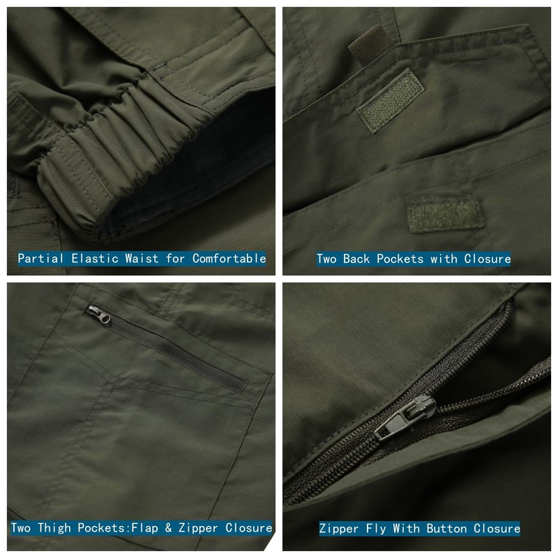 - Cargo Shorts For Men: Multi pockets men's shorts features 2 front slash pockets,2 back pockets, plus 2 thigh pockets with hook & loop closure for your belongings.