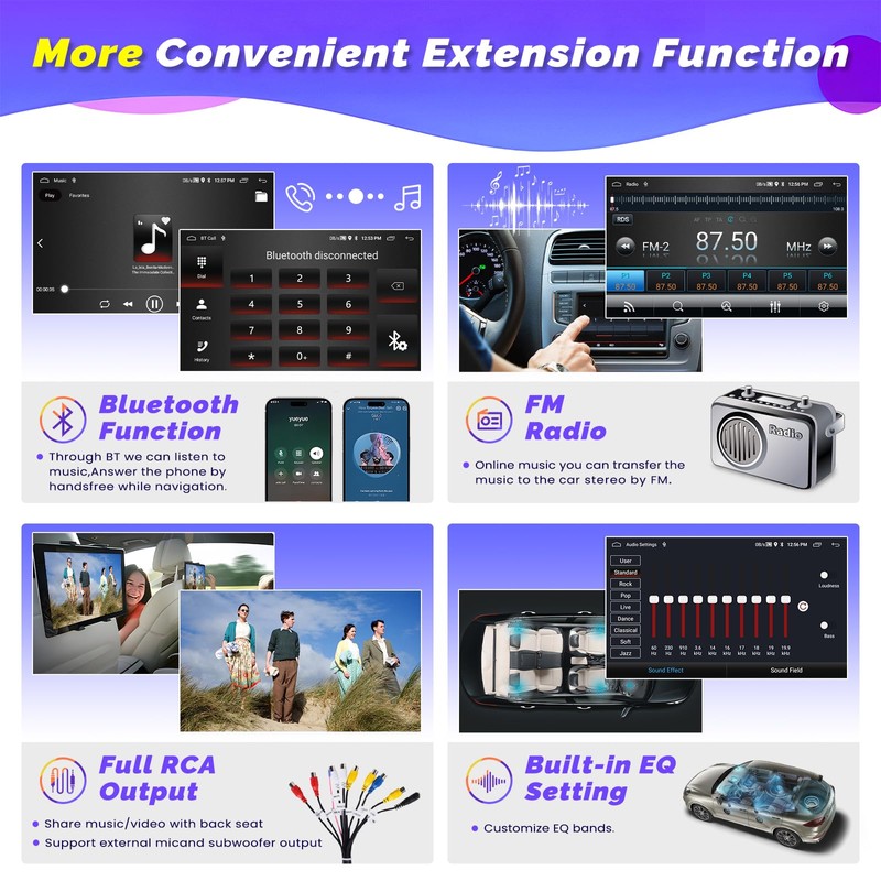 - 【Bluetooth & Handsfree Calls/Music & FM/RDS】Car Stereo for Hyundai Elantra equipped with bluetooth function allow you to answer callings, listen to music and media sounds from car stereo and ensure the safety on your way. You can have phone calls without distractions via bluetooth. Car audio receiver with high-quality FM radio provides channel broadcasts, weather forecasts, real-time road conditions, and with 18 preset radio stations that can allow you to listen to programs anytime