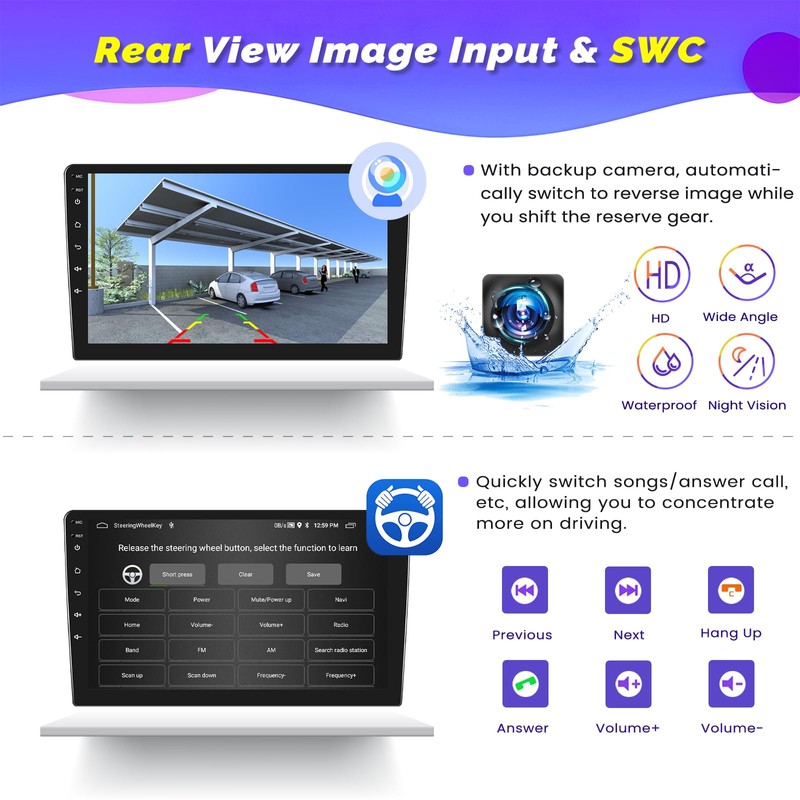- 【AHD Backup Camera & SWC】Stable wired transmission linked between Ultra-Thin Car Radio and the AHD backup camera(Included). Car radio dash kit for Hyundai Elantra could automatically display the image when you shift to reverse gear. No longer worry about your reversing safety. This Android radio also support steering wheel control, you can quickly switch functions which you want with your car's steering wheel