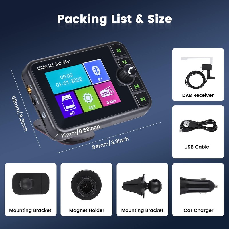 - Upgraded DAB/DAB+ Receiver: Uses DAB decoding to reproduce digital audio signals in CD-like quality. Uses FM transmission for audio output so you can listen to DAB+ broadcasts even if your car radio does not have DAB+ functionality.