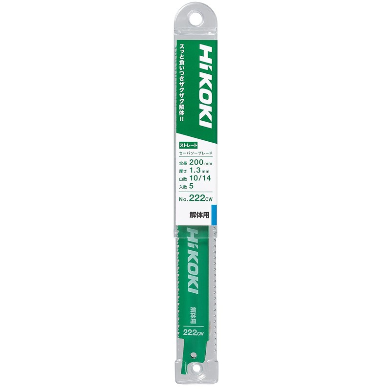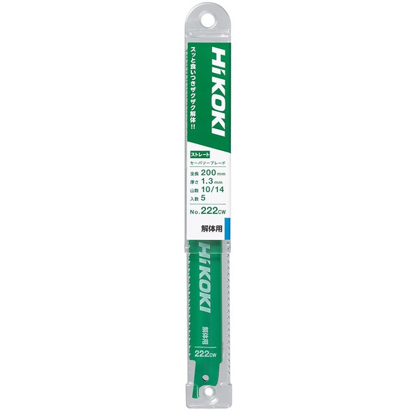 HiKOKI 0037-6974 Saber Saw Blade for Demolition, Reciprocating Saw Blade, Total Length 7.9 inches (200 mm), Blade Thickness: 0.05 inches (1.3 mm), Number of Threads: 10/14, Combination Blades, No. 222CW, 5 Pieces